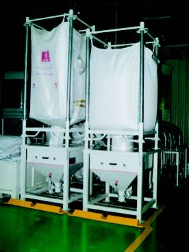Structure allowing to drain away all the types of big bag. Special version for powders and products with difficult flow.